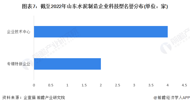 根据中国企业数据库企查猫,目前山东省存续和在业的水泥制造企业共293家,其中共有4家企业为企业技术中心,有2家企业为专精特新企业。
