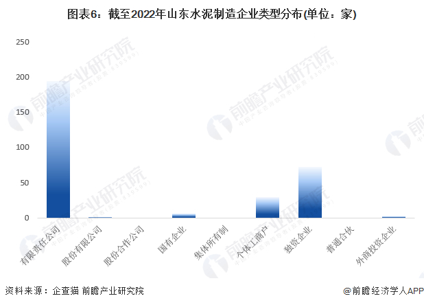 根据中国企业数据库企查猫,目前山东省存续和在业的水泥制造企业共293家,山东省水泥制造企业以有限责任公司为主,目前共有195家,独资企业有73家。