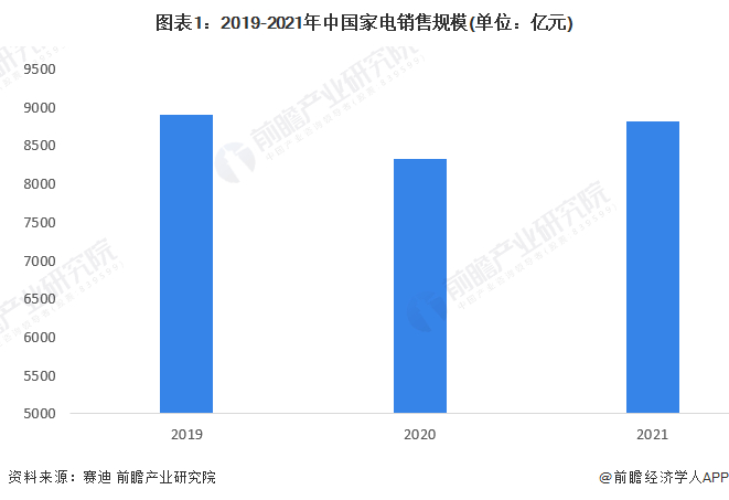 2020年,我国家电销售规模达8333亿元,受疫情影响,同比下降6.48%。2021年,我国家电市场规模8811亿元,同比增长5.7%,增长主要来自于下沉市场(覆盖三线以下城市、县镇与农村地区)的家电需求。