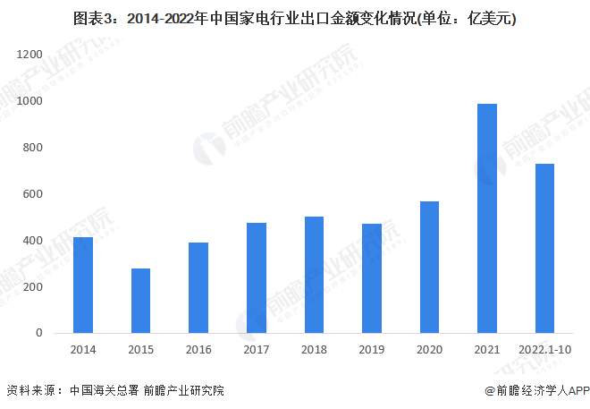 2022年中国家电行业进出口市场现状分析 家电出口金额波动上升【组图】