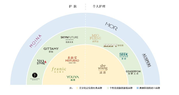 环亚有五大板块——“美肤宝”领衔的防晒及汉方护肤,“法兰琳卡”的天然护肤;“肌肤未来”“即肽”领衔的功效护肤,以“滋源”品牌为主的洗护发,以及国际业务、OEM及新品牌孵化业务。