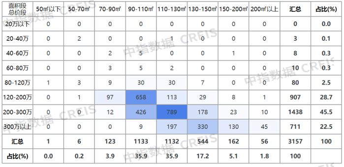 图:2022年12月合肥市新房面积、总价成交结构