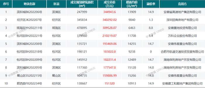 2022年合肥房地产企业销售业绩TOP10