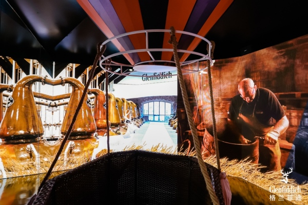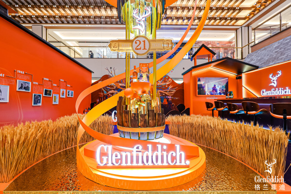 整体亮橙色的快闪布置,营造了一个潮趣而富有活力的空间,呼应着美好新年的吉庆氛围。乘上热气球,通过体感互动跟随福鹿遨游格兰菲迪酒厂所在地——苏格兰达夫镇,探寻酿造威士忌的灵感源泉。