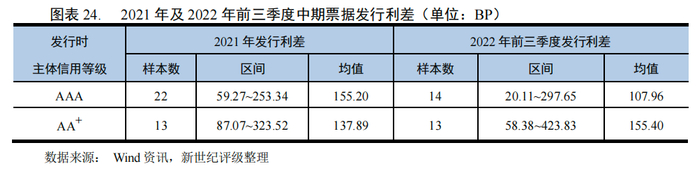 2021年,我国港口行业企业共发行35支中期票据,主体信用等级为AAA级和AA+级的利差均值分别为155.20BP和137.89BP;2022年前三季度共发行27支中期票据,主体信用等级为AAA级和AA+级的利差均值分别为107.96BP和155.40BP。