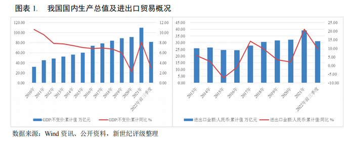 宏观经济和进出口贸易形势是影响我国港口行业活跃程度最重要的两大因素,港口行业随其波动呈现周期性。2022年以来,在疫情、通胀、紧缩性货币政策以及地缘政治冲突等众多不利因素交织影响下,我国经济发展面临的外部环境更趋复杂严峻,初步核算,2022年前三季度国内生产总值(GDP)87.03万亿元,按不变价格计算,同比增长3%,经济增速放缓。