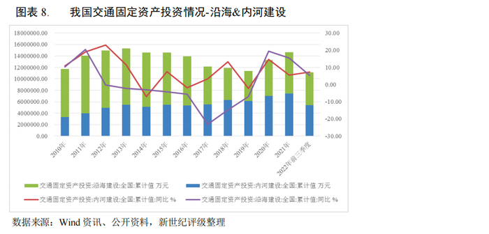交通基础设施建设是拉动经济回升、稳定经济社会运行的重要手段之一,2022年以来,我国沿海和内河的固定资产投资额继续保持增长态势。