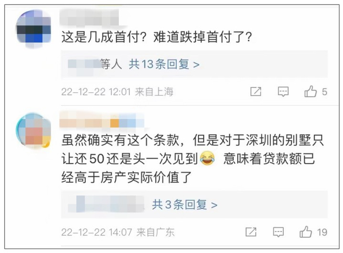 此事迅速引发讨论。有网友评论:“这意味着贷款额度已经高于房产实际价值了。”“典型的资不抵债。”更多的网友感到难以置信:“没听过,没见过,今天开眼了。”“这个条款听说过很多年,但是第一次见到。”也有个别网友猜测,该博主办理的可能不是普通的个人按揭贷款,而是经营类贷款。