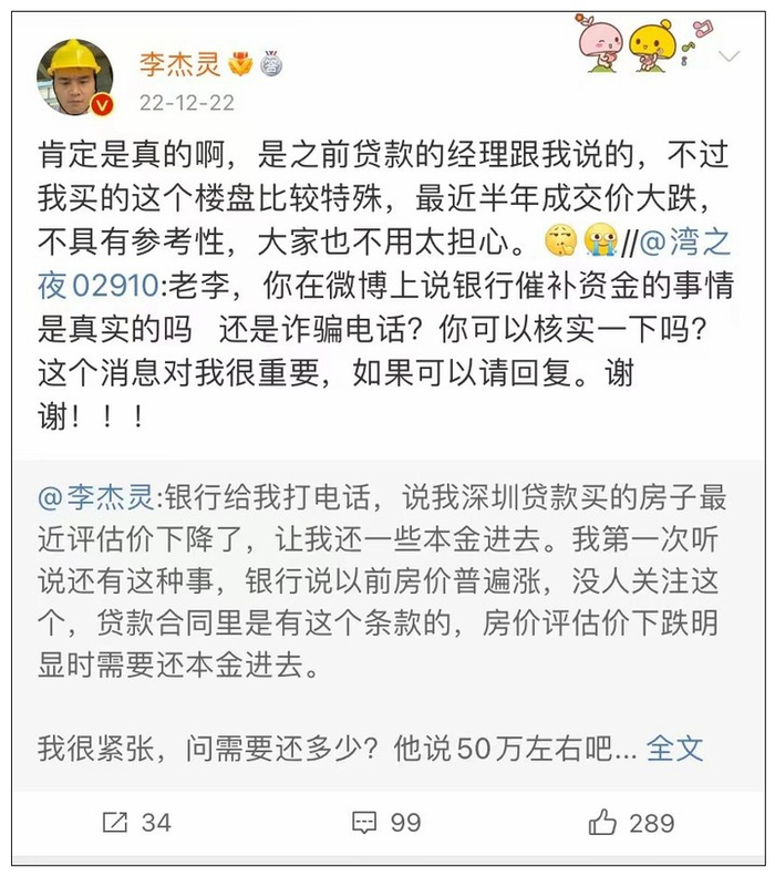 房价下跌,银行追讨本金?购房者发帖:房价低于贷款余额,银行要求补足50万元……