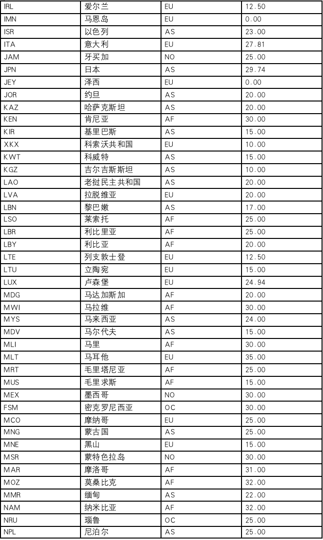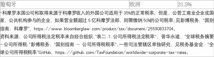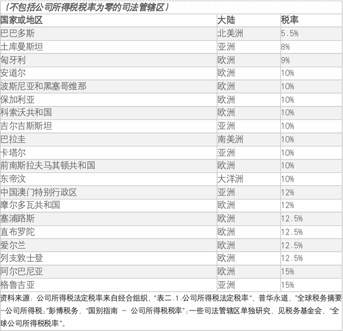 表 3.2022年全球公司所得税法定税率最低的20个国家或地区