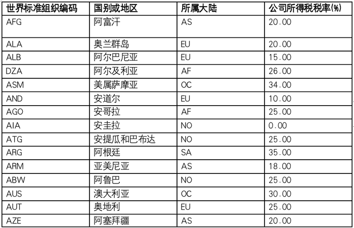 亚洲和欧洲国家的公司所得税税率往往低于其他地区的国家,许多发展中国家的公司所得税税率高于全球平均水平。