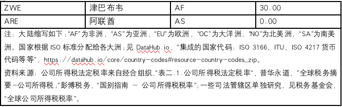 该数据集不反映特殊税收制度,包括但不限于专利盒税制、离岸税收制度或特定行业的特殊税率。