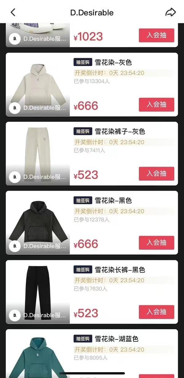 或许因为演员开店、直播、出付费歌曲,常被诟病为“割韭菜”,王鹤棣在直播中强调,“感兴趣的人也要理智购买,喜欢才是最重要的。”在D.Desirable官方网店中,产品也不是有钱就能买。消费者需要抽签,抽中才能获得购买资格。商品均为限量,据有心人统计,库存平均为400件,参与抽签人数从4000人次到1.6万人次不等。