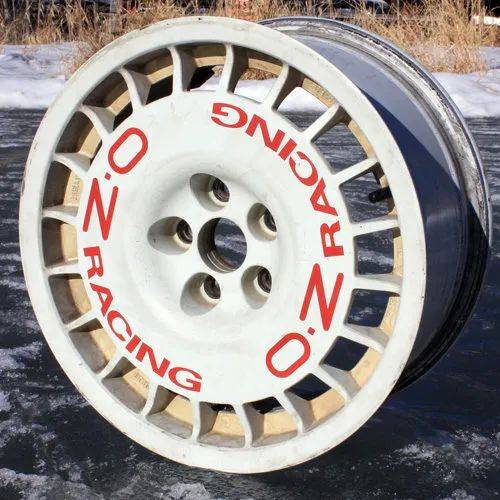 OZ Rally Racing最经典的款式,采用了白色的涂装,在轮圈中部有一个极具特色的圆盘样式,上面有醒目的红色“OZ Racing”的标识。然后外圈的辐条细而多,辐条坚韧而致密,强韧的设定可以拉力比赛的恶劣路况。