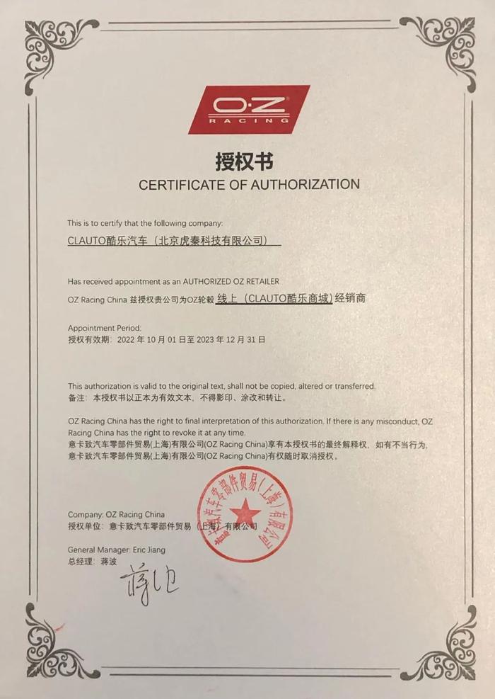 CLAUTO酷乐汽车官方商城合作OZ中国公司,所有的OZ轮圈由意大利生产,满足TUV和NAD认证,确保产品质量,正规纳税进口,正品保证。