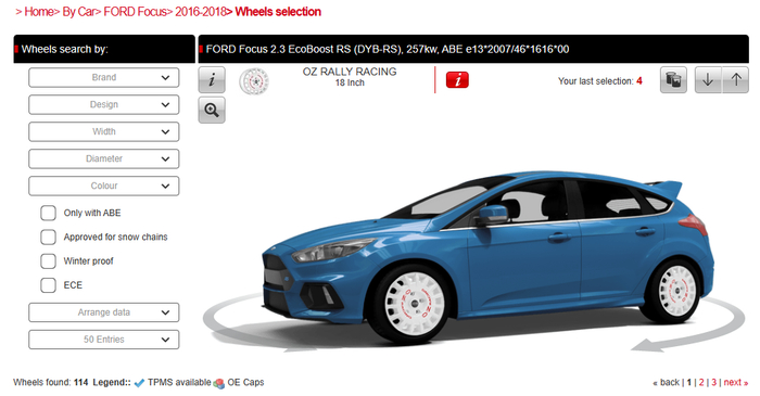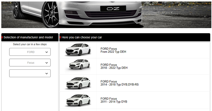 OZ的适配数据跟普通的轮圈不一样,OZ做了一个适配器,输入你的车型,OZ就可以给出你的车型适配的轮圈的款式,详细可以查看到数据。