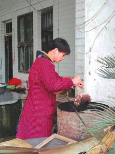 在杨廷铭老家,人们穿围衣稀松平常,“它保暖又防污,不出门的时候大家都爱穿着它。”杨廷铭说,要杀猪办席,男人们就要穿上围衣做饭,等吃完饭,女人们又换上围衣开始洗碗擦桌。“四川男人穿上围衣做饭,并不代表他们地位低或者就是‘ 耳朵’,在家里,男女平等,每个人都要干活出力。”他说。