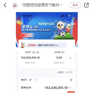 近日,有小红书博主发帖晒出了自称是自己银行卡余额的截图,卡内余额9位数,约1.44亿元。有网友称,“做梦都不敢想的钱。”相关截图在网上广为传播,博主自称是投行MD(董事总经理),但其内容真实性无法确认。该博主的过往发帖部分也与投行相关,声称可以解答关于投行的一些问题。有业内人士表示,上述金额及人的身份都存疑。