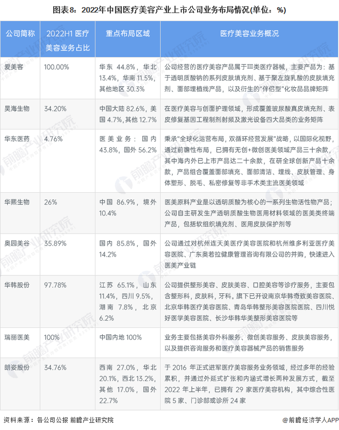 医疗美容产业上市公司医疗美容业务布局