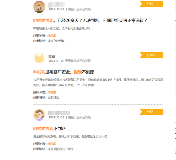 2022年12月30日,财联社记者曾就提现问题咨询哗啦啦官方客服,对方表示,“当前提现账户存在部分延迟问题”, “目前服务器升级中,人工处理较慢,无法查看到账时间”。