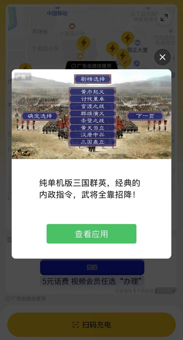 例如某团充电宝微信小程序、识货APP和某度地图软件的弹窗广告页面上,“广告”、“跳过”的标识采用均白色字体,与广告背景颜色几乎融为一体,需要仔细看一遍页面才能注意到。