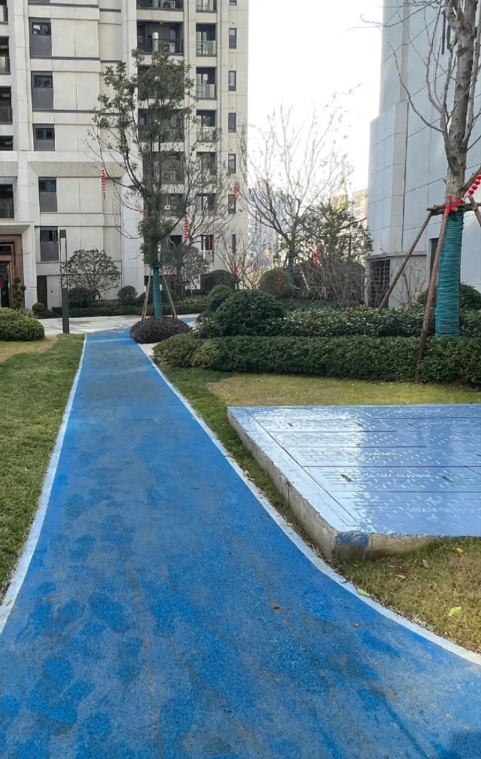 上月29日,记者在鹿宸印小区看到,现场正有物业人员对小区的部分公共区域进行打扫,沿着小区走了一圈,确如朱先生所说,小区的公共区域存在不少问题。比如,小区的塑胶跑道破旧,还未使用就已看到“打补丁”的情况;架空层的儿童区域,犹如使用了几年等。