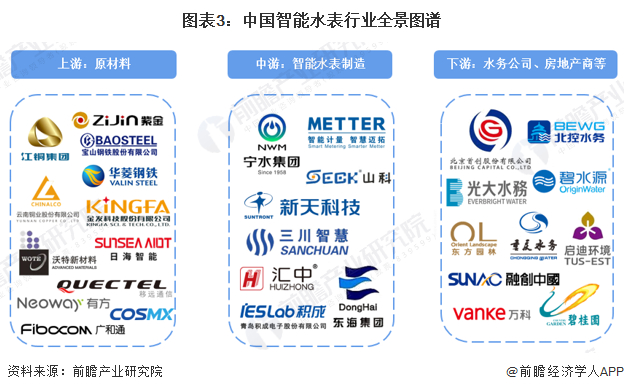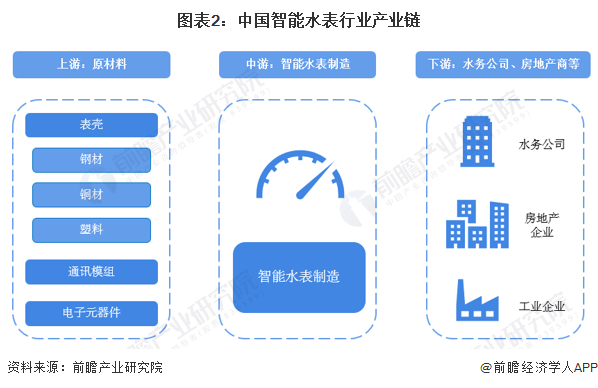 2、产业链剖析:上游为元器件供应商,下游为供水公司、房地产企业等