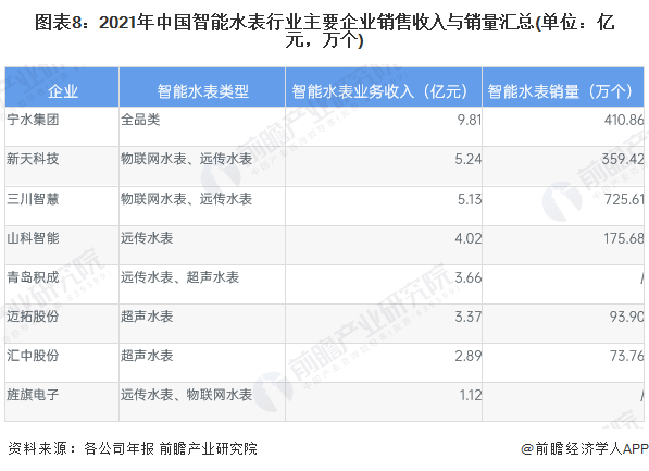 智能水表行业主要上市公司:宁水集团(603700.SH)、新天科技(300259.SZ)、三川智慧(300066.SZ)、山科智能(300897.SZ)、迈拓股份(301006.SZ)、汇中股份(300371.SZ)等