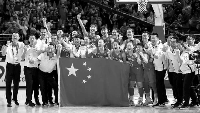 中国女篮在世界杯半决赛击败东道主澳大利亚队后合影