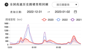 此外,全国高速方面,从2022年12月31日-2023年01月02日,全国高速平均拥堵里程232.6km,较2021年同期上升3.02%,迎来三年疫情的首个正向增长。