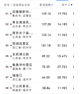 众多游客选择在元旦假期奔赴山川湖海,用一场说走就走的旅行迎接新年开端。百度地图交通大数据显示,1月1日,重庆武隆喀斯特、青岛海滨、杭州西湖、南京玄武湖、温州楠溪江、福州于山等登上元旦景区客流前十,成为最受欢迎的旅行目的地。