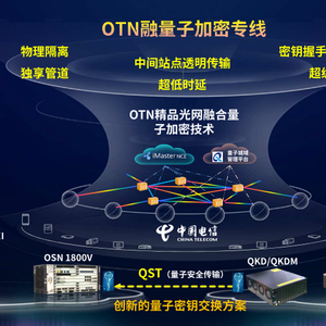 一直以来,中国电信都将政企 OTN精品光网作为其产业数字化服务产品的主力军之一,已建成覆盖国内300多个城市。此次创新方案就依托于OTN精品光网,通过创新的安全接口实现华为OTN设备与国盾量子密钥分发设备间密钥的安全获取,基于量子密钥完成了OTN专线 的L1层业务加密。