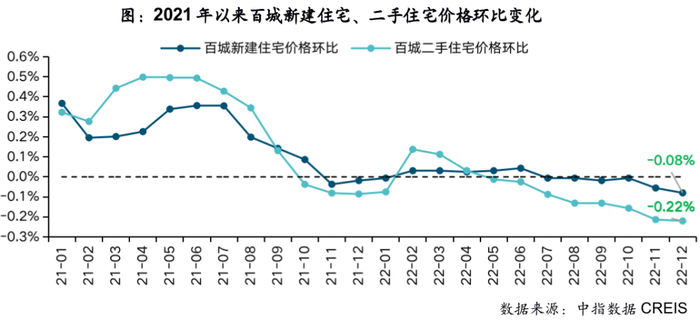 房价下行压力突出!2022年全国百城新房、二手房价格年度累计均下跌