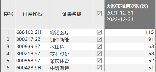 Choice金融终端数据显示,2022年,超过1000家A股上市公司的大股东对自己持有股份的上市公司进行了减持。其中,6家A股上市公司在2022年被大股东减持的次数超过50次。