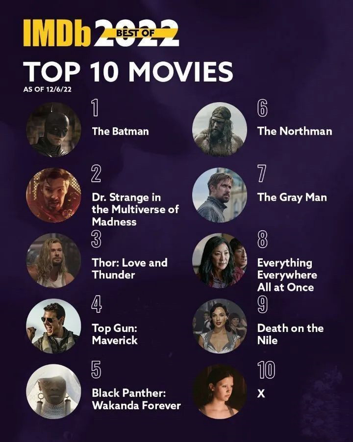 【艺外】2022IMDb最受欢迎电影排行榜来啦!你看过哪几部呢