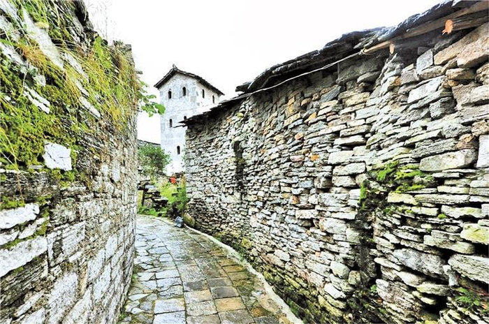 “云峰八寨”隶属西秀区七眼桥镇,距安顺城区10余公里。为屯堡风景名胜区、“全国重点文物保护单位”的本寨处于显要位置。张定贵指着一座座耸立的碉楼介绍说,本寨人一直按祖训,传承着建筑、服饰、饮食、节庆等习俗,遗韵犹在。古朴典雅的石头建筑依山而建,各家各户自成体系的封闭式“合院”,分布在曲折的小巷两侧。户与户有暗门相通,家与家有高墙相连,形成布局严谨、主次有序、结构坚固、易于自守的格局。