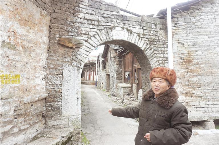 安顺市西秀区大西桥镇九溪村是黔中地区最大的屯堡村落,2019年被列入中国传统村落名录。步行村道,老建筑石墙斑驳,依稀讲着光阴的故事。“九溪村有3街6洞,1553户5177多人,都是一个小乡镇的规模了。”如今已把屯堡服饰制作技艺传给下一代的裁缝师傅张世福,在九溪村老年协会担任会计,同时也是一个资深的地戏表演爱好者,他所说的“3街6洞”,指的是3条街道6个门洞,而这样的格局,在屯堡初建时就已奠定。