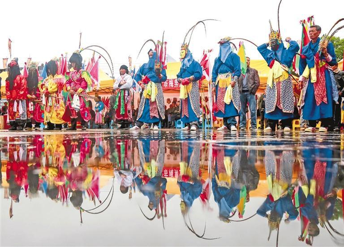 中国最大的屯堡在黔中,黔中最大的屯堡在九溪,民间就曾有“九溪是座城,只比安平少三人”的说法。这里的“安平”,就是今天的平坝县城。由此可见,古代的九溪虽为村寨,但其繁华程度堪比城镇。在人口富集的九溪,民俗活动丰富,玉皇会、观音会、蟠桃会、开秧门、雷神会、河灯节、牛王会、祭灶神等从年头热闹到年尾。在九溪,可以窥见和感知黔中屯堡的人文肌理和文化宽幅。
