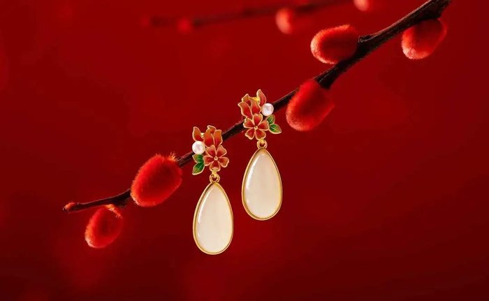 一系列国风首饰主石的制作材质,选取和田玉、南红、葡萄石等优质玉石,自带风华,自生优雅。