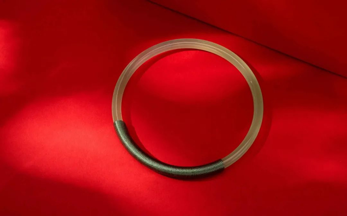 这款玉镯在镯子上绕上了丝线,没有多余装饰,更显古典秀气。