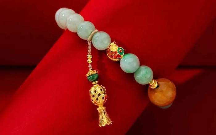红绿色经典搭配,戴在腕间衬得肤色白皙,端庄优雅。