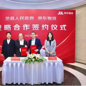 1月4日,京东物流与河北沧县人民政府战略签约仪式在北京举行。根据协议内容,京东物流将助力沧县政府打造区域新业务、建设新智能物流园区,实现产业数字化战略升级。