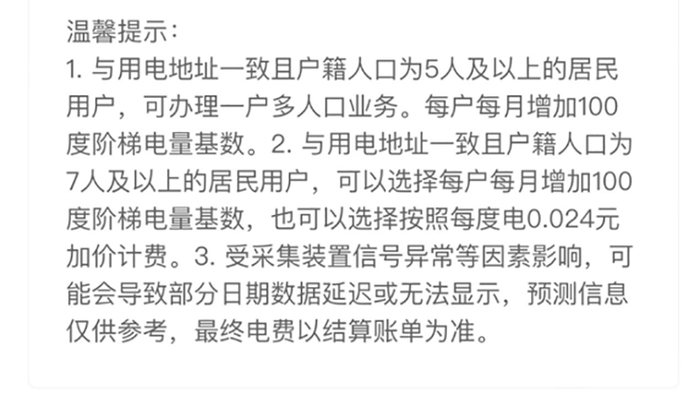 有国家电网的工作人员对上海证券报记者分析认为,临近年底加上冬季用电高峰,居民家庭用电量迅速增加,按照阶梯电价规则升入新一级阶段,导致电价相应上升。这位工作人员还表示,家庭成员较多的居民可以向电网公司申请增加阶梯用电量第一阶梯的额度。具体规定如下:
