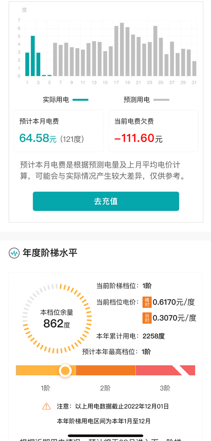 有多名受访者通过进一步查询发现,自家的用电量未超过阶梯电价第一阶段电量,依然享受最基础的居民电价,意味着电费暴增是12月用电量大幅增加所致。