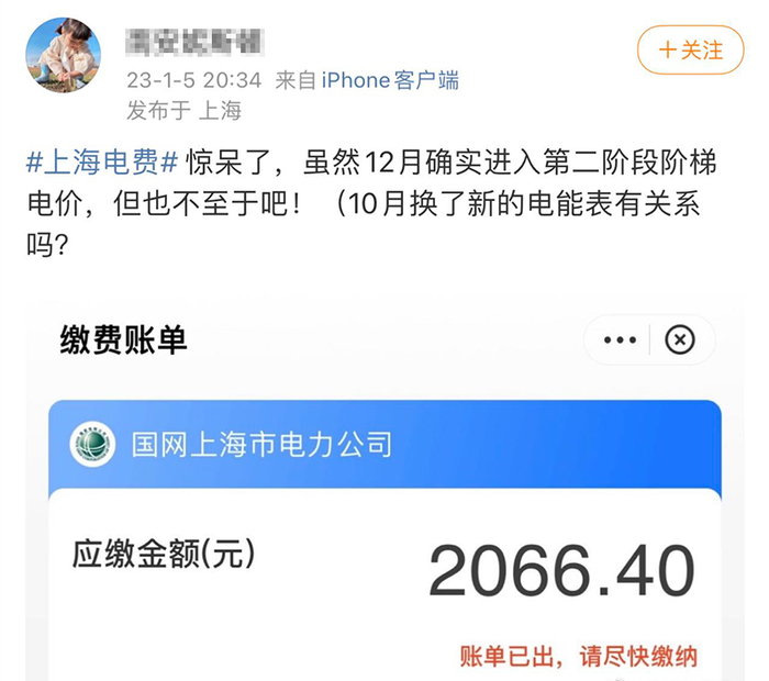 近日,不少居民收到12月份的电费账单,不由惊呼遭遇了“电费刺客”。对比11月,自家电费普遍上涨1.5倍至5倍,以“上海电费”为标签的话题甚至冲上了微博热搜。