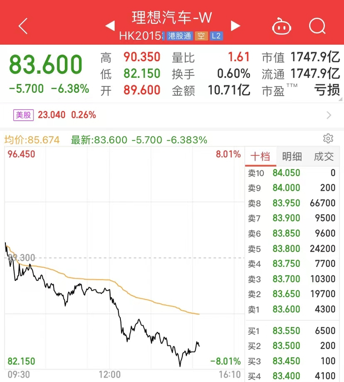 港股造车新势力集体跳水