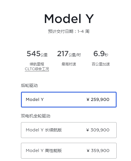 值得注意的是,在具体降价幅度方面,Model 3后轮驱动版从26.59万元降至22.99万元,降价3.6万元;Model 3高性能版从34.99万元降到32.99万元,降价2万元。Model Y后轮驱动版从28.89万元降至25.99万元起售,降价2.9万元;Model Y长续航版从35.79万元降到30.99万元,降价4.8万元;Model Y高性能版从39.79万元降到35.99万元,降价3.8万元。