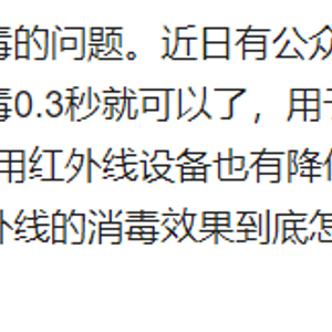 对此,疾控中心的专家做出了明确回答,大意就是,常见的紫外灯消毒通常要半小时,时间太短恐难以起到消毒作用。而红外线消毒则主要用在耐热的餐具消毒上。