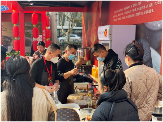 在“雅货进蓉”迎春购物展销现场,可体验沉浸式买买买!吃货们在这里能寻觅到汉源的坛子肉、石棉的草科鸡、宝兴的藏香猪腿、荥经的挞挞面、被大熊猫亲吻过的荥经“雅笋”、被誉为“川菜之魂”的汉源贡椒……想品茶饮的消费者,可以买到有千年贡茶之称的蒙顶山茶、悠久历史的藏茶、独具特色的老鹰茶和降血脂的芦山甜茶等特色茶;过年怎么能少了酒,来自石棉的黄果柑果酒和蓝莓系列果酒、汉源的花椒啤酒,价格实惠,都是展销现场备受欢迎的热卖产品。