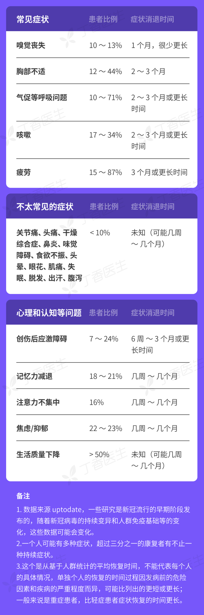 但总的来说,大多数常见症状会在 2~3 个月内消失,但有些可能会持续半年或更久。